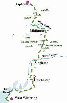It was brought back to life in 2008 when Keith & Sally from ‘Footprints of Sussex’ received a grant from West Sussex County Council to publish a trail guide and way mark the route. They took the opportunity to extend the route southwards to the entrance to Chichester Harbour and to re-route it along a pretty section of the Rother Valley
